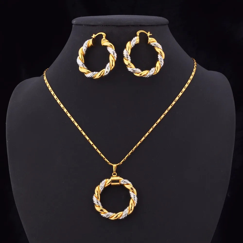 - Packaged in an elegant box, the Dubai Sets Gold Pendant Necklace & Big Round Twist Chunky Hoop Earrings make for a luxurious and thoughtful gift. Ideal for birthdays, anniversaries, or as a symbol of timeless elegance and style.